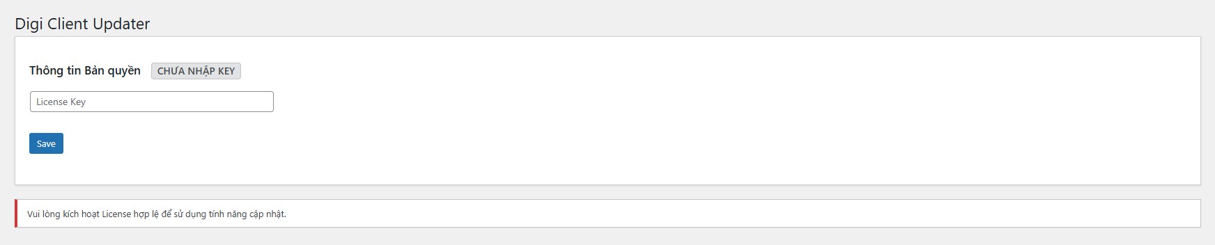 digi-client-updater-1.2.0.zipvà nhấn Cài đặt ngay (Install Now). - Sau khi cài đặt xong, nhấn Kích hoạt (Activate).